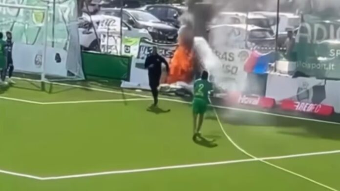 Um episódio inusitado marcou a partida entre Paradiso e Bavois, pela terceira divisão do Campeonato Suíço, no sábado (4). Durante o jogo, um foco de incêndio surgiu à beira do campo e consumiu algumas faixas da torcida, o que obrigou a interrupção imediata da partida.