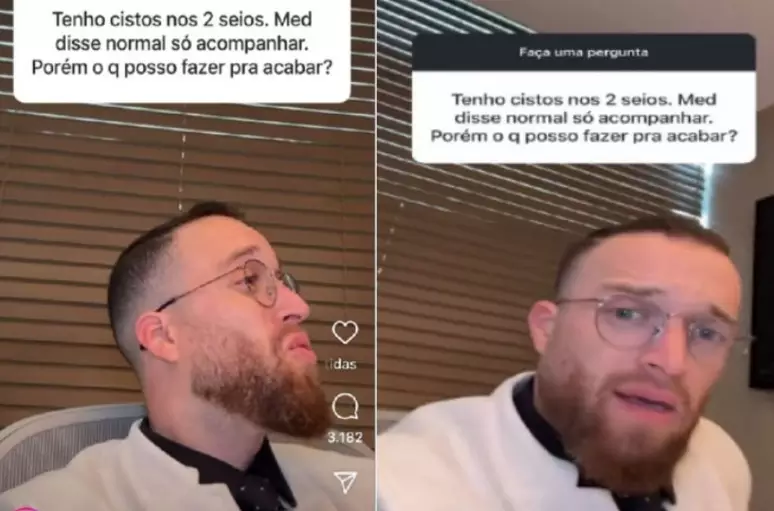 O vídeo em que o médico falava sobre os “riscos” do exame acumulava quase 62 mil visualizações no Instagram e mais de 6 mil no Youtube, na época em que a AGU move o processo. Lucas é questionado por um seguidor sobre uma pessoa que fazia acompanhamento de dois cistos nos seios e o que poderia ser feito.