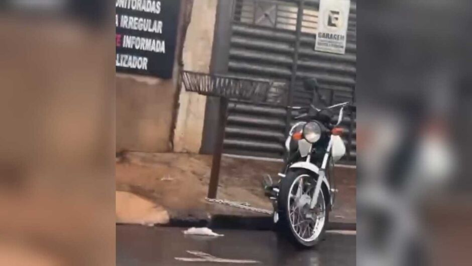 No bairro Guanandi, um caso chamou atenção: um motociclista, ao estacionar, usou uma corrente enorme para prender sua moto à lixeira de uma residência. A cena, registrada por um leitor que passava pelo local, rapidamente se destacou por ser algo fora do comum.