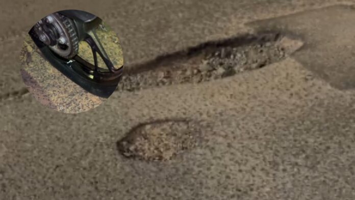 O frentista Guilherme Romeiro da Silva retornava para casa após o trabalho, na noite de terça-feira (23), quando caiu em um buraco e quebrou a roda de sua motocicleta, na Avenida Carlinda Pereira Contar, próximo à Rua Lise Rose, no Jardim Veraneio, em Campo Grande.