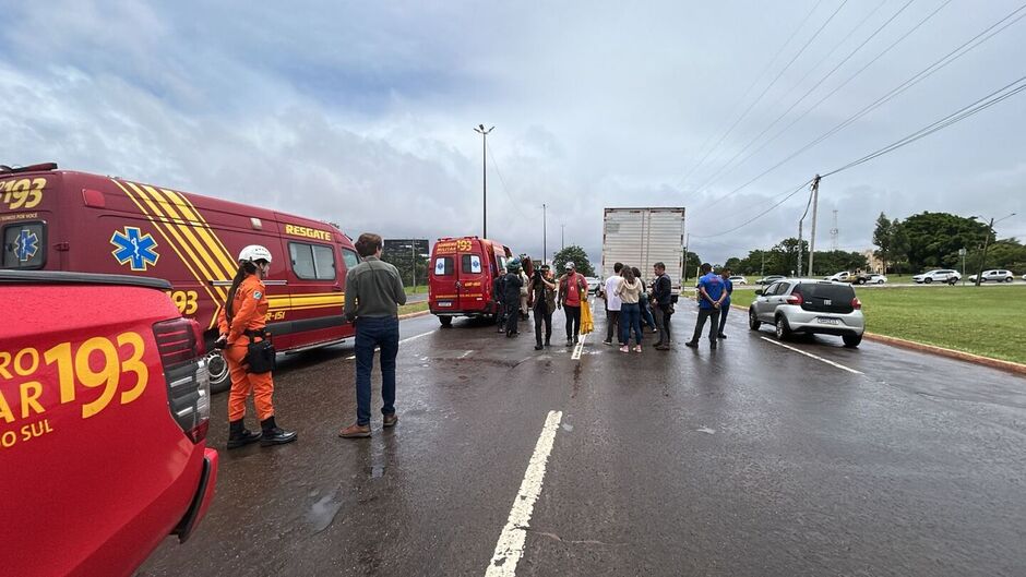 Com o impacto, o caminhão chegou a balançar, conforme relatado pelo condutor aos socorristas. Equipes do Corpo de Bombeiros foram acionadas e realizaram os primeiros atendimentos ainda no local do acidente.