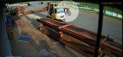 Em Goiás, um motociclista morreu depois de bater em toras de madeira que eram transportadas por uma empilhadeira no meio da rua. As imagens mostram quando a empilhadeira, carregada de madeira, vira na contramão. O motociclista Victor Garcia de Oliveira, de 22 anos, seguia no sentido oposto, é atingido em cheio e morre na hora. “Ele só queria chegar em casa, só queria ir embora pra casa e infelizmente deparou com a empilhadeira, que estava na contramão”, disse a mãe da vítima.