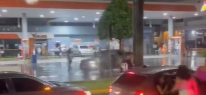 Pessoas que passavam pelo local registraram o momento do atropelamento. Nas imagens, é possível ver o veículo saindo do estabelecimento, atingindo as vítimas em zigue-zague e fugindo sem prestar socorro.
