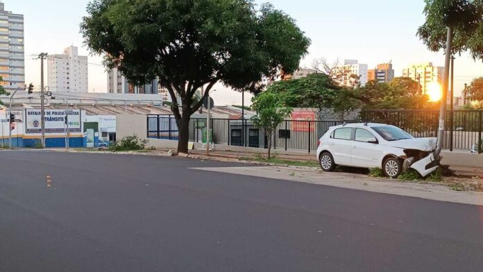 Nas primeiras horas da manhã deste domingo (21), um acidente de trânsito foi registrado no cruzamento da Rua Barão do Rio Branco com a Rua Bahia, em Campo Grande. Um veículo VW Gol perdeu o controle da direção, subiu no meio-fio e acabou colidindo contra um poste de sinalização.