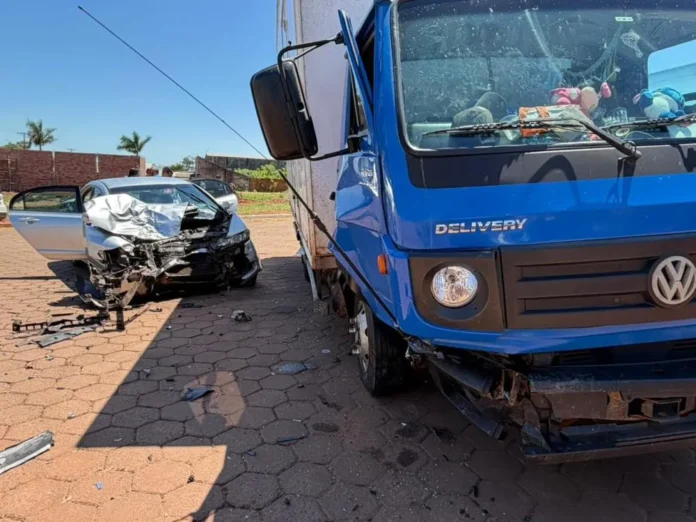 Um Honda Civic colidiu com um caminhão de carga na manhã de segunda-feira (5), no cruzamento da Rua José Antônio Vila Real com a Rua Camélia, em Bataguassu. A motorista do carro não possuía Carteira Nacional de Habilitação (CNH).