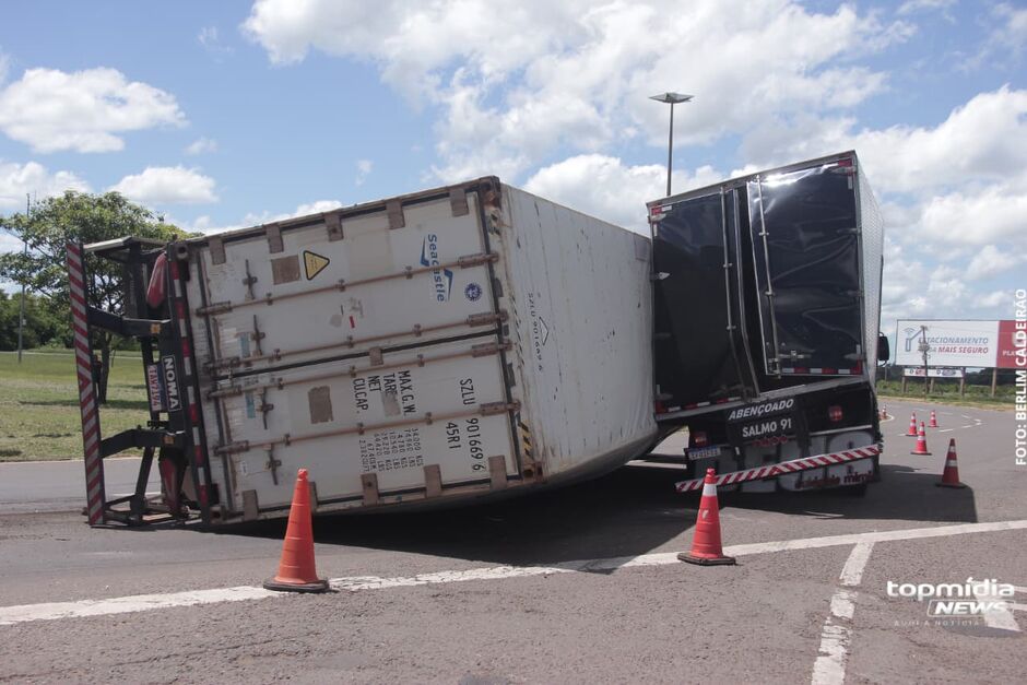 Segundo o relato do caminhoneiro, ele trafegava pela pista da direita da rotatória, enquanto a carreta seguia pela faixa da esquerda, no sentido norte–sul. Ainda conforme o motorista, após o tombamento, o condutor da carreta informou que realizava a rotatória normalmente, mas que a carga teria “puxado” o veículo, provocando a perda de controle e o tombamento.