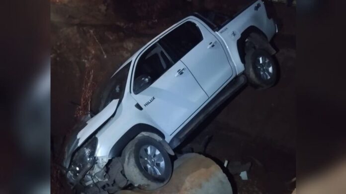 Por volta das 22h, o Corpo de Bombeiros foi acionado após relatos de veículo acidentado no local. Ao chegar, os militares encontraram a caminhonete caída dentro de uma escavação existente na via, destinada a serviços de infraestrutura urbana.