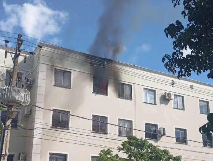 O Corpo de Bombeiros foi acionado pelo síndico do condomínio e conseguiu controlar o fogo, que também afetou parte da cozinha e do quarto do imóvel.