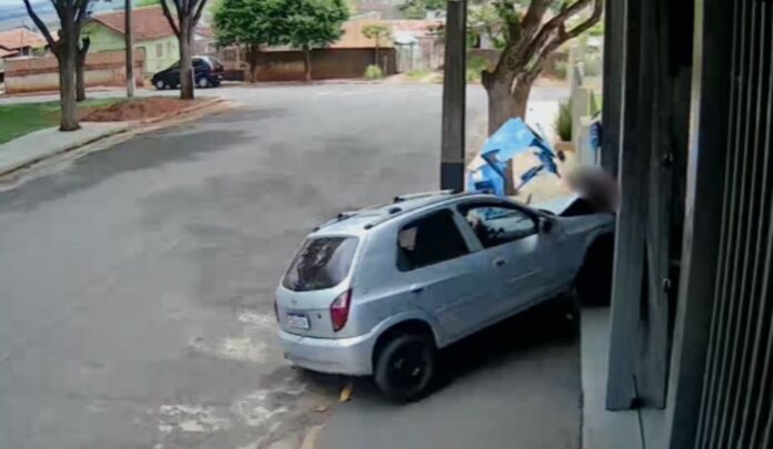 Imagens de câmeras de segurança flagraram o momento em que o suspeito joga o carro contra a calçada e atinge a vítima. (Para assistir o vídeo clique aqui).