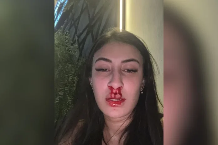 Gabriela Cardoso postou nas redes sociais uma foto com o rosto ensanguentado e o relato da briga com o rapaz.