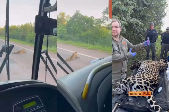 Uma onça-pintada morreu após ser atropelada na BR-262, no sábado (18), em um trecho do Pantanal entre os municípios de Miranda e Corumbá. A rodovia é conhecida pelo alto número de atropelamentos de animais.