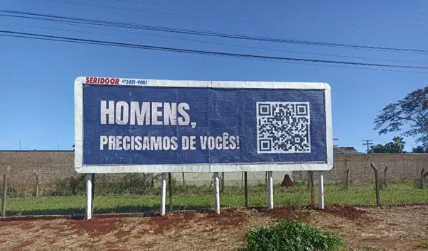 Um outdoor instalado na Rua Manoel Santiago, em frente à Faculdade Anhanguera e próximo da FADIR/UFGD, tem chamado a atenção em Dourados com a mensagem “Homens, precisamos de vocês”, acompanhada de um QR Code que leva a conteúdos informativos sobre assédio e canais de denúncia.