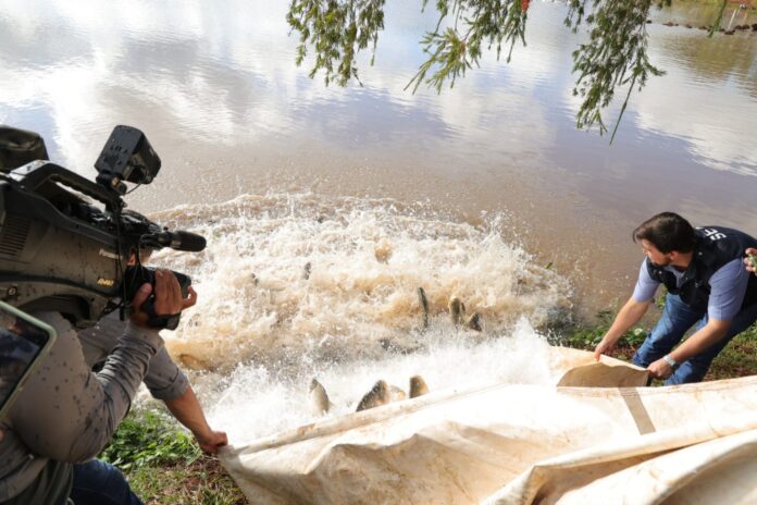A tarde desta segunda-feira (14) foi marcada por um evento especial em Dourados: a soltura de 2,5 toneladas de peixes no lago do Parque Antenor Martins, no Jardim Flórida. A ação, realizada pela Prefeitura, por meio da Secretaria Municipal de Agricultura Familiar (Semaf), integra as atividades preparatórias para a 1ª Festa da Páscoa, que irá ocorrer entre os dias 17 e 20 de abril.