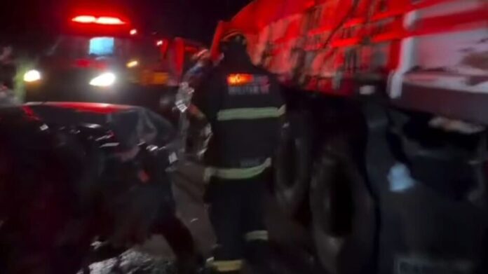 Por conta do acidente, o trânsito ficou congestionado nos dois sentidos da rodovia, com retenção superior a um quilômetro.