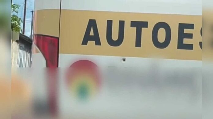Um episódio inusitado chamou a atenção de moradores do bairro Aero Rancho, em Campo Grande. Um ônibus de autoescola foi flagrado circulando pela rua com uma marca na lataria que, à primeira vista, parecia apenas o ponto do “i” do nome da empresa — mas que, ao ser observada de perto, revelou-se um furo de bala.