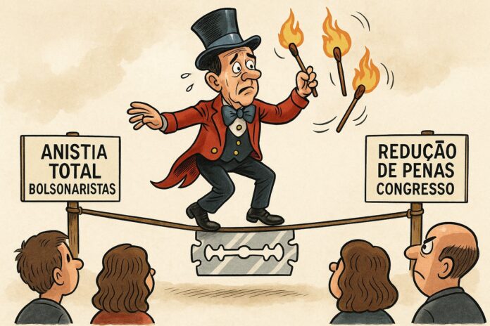 A tramitação da anistia virou um teste de nervos entre Câmara e Senado. Paulinho tenta costurar um texto “light”, enquanto os líderes do PL exigem perdão completo aos condenados. Nos bastidores, Hugo Motta e Davi Alcolumbre ensaiam um armistício institucional, mas o clima é de desconfiança. No fundo, ninguém quer ficar mal com o eleitorado — nem parecer conivente com o radicalismo.
