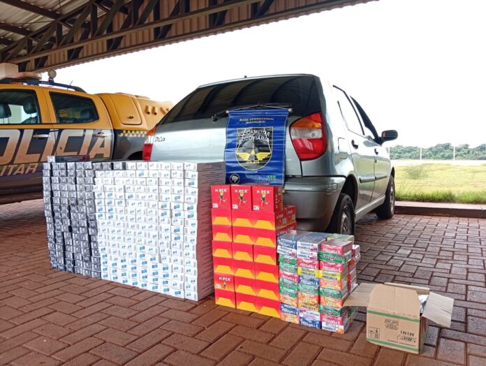 Durante a fiscalização, os policiais visualizaram um veículo Fiat Pálio, com placas de Goiânia/GO, estacionado no pátio de um posto de combustíveis às margens da rodovia. Ao ser realizada a abordagem, a condutora, de 37 anos, informou que transportava cigarros e outros produtos de origem estrangeira.