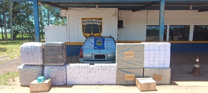 No interior do veículo foram apreendidos 250 pacotes de cigarros da marca Fox, além de prensas de roupas, perfumes e óculos. Após contato com a Polícia Federal, foi orientado que a mercadoria fosse encaminhada à Receita Federal, em data previamente agendada. Os envolvidos foram liberados após a assinatura do termo de guarda, com seus direitos preservados.