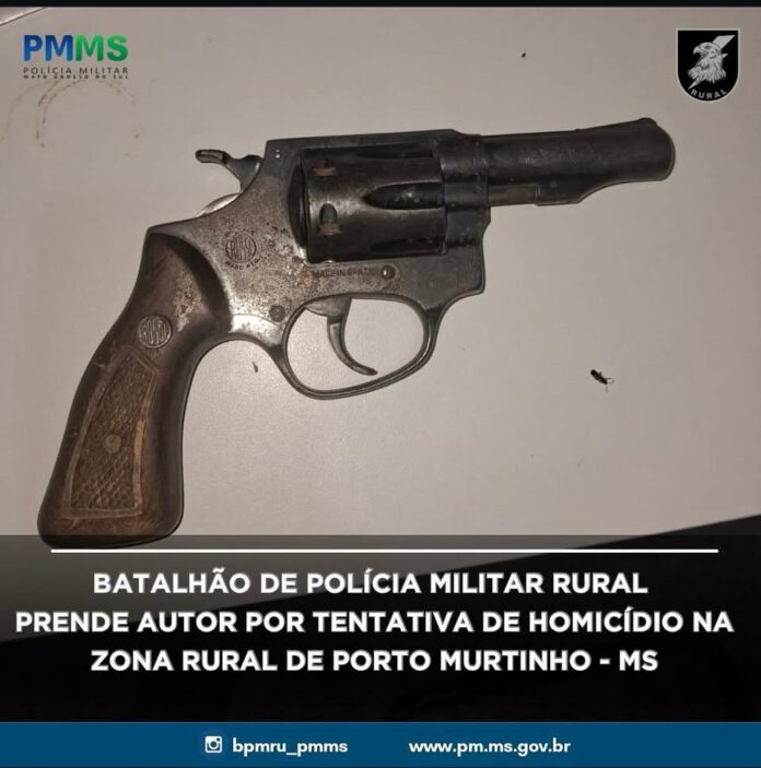 Na tarde do dia 25 de dezembro, a equipe do Batalhão de Polícia Militar Rural atendeu uma ocorrência na zona rural do município de Porto Murtinho, envolvendo tentativa de homicídio e posse irregular de arma de fogo. A equipe foi acionada após informações sobre um desentendimento entre funcionários de uma fazenda e, no local, apurou que o autor teria efetuado disparos de arma de fogo contra duas pessoas, que conseguiram fugir sem serem atingidas.