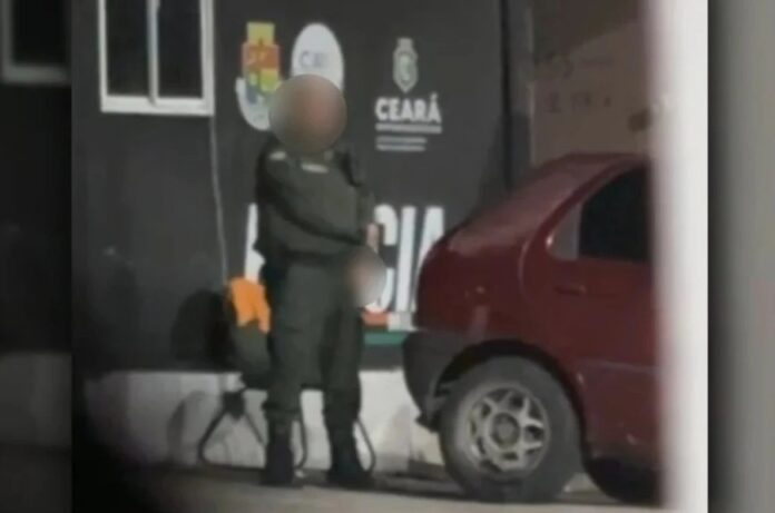 O vídeo foi gravado por uma moradora da comunidade, que flagrou o militar praticando os gestos obscenos em frente a uma unidade policial do bairro Pirambu. Careca e com uma farda verde, o policial se masturba ao lado de um carro vermelho em uma base que moradores do bairro descrevem como “cabine”.