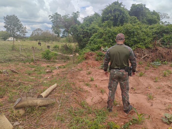 No âmbito da “Operação Protetor dos Biomas – Desmatamento”, a Polícia Militar Ambiental (2º BPMA) de Mundo Novo flagrou a intervenção e o desmatamento irregular em uma área de Reserva Legal (RL) no município de Iguatemi. A fiscalização ocorreu na última terça-feira, 28 de outubro de 2025.