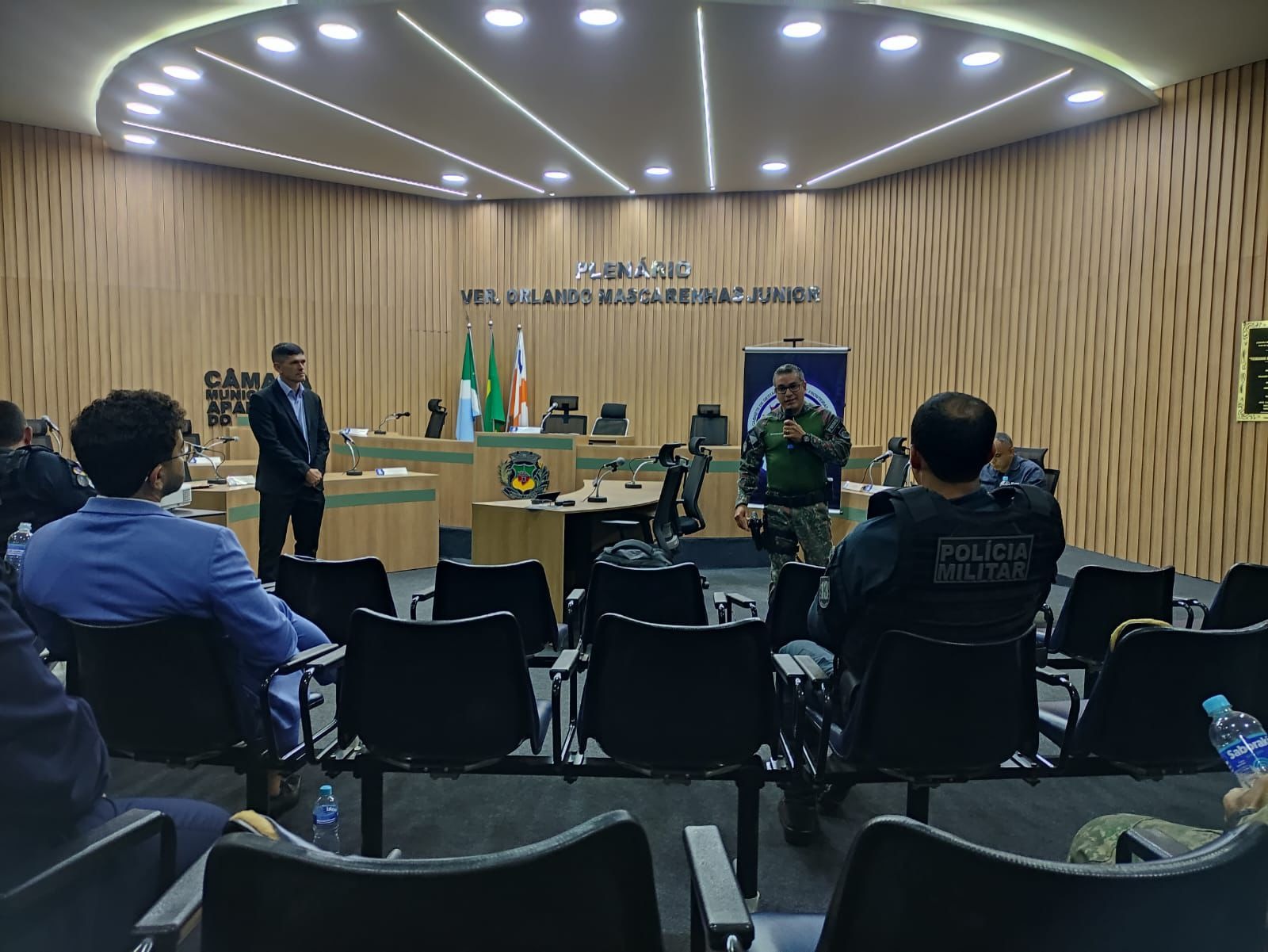 O Comando da Polícia Militar Ambiental de Aparecida do Taboado (2º GPM/3ª CIA) marcou presença, na última quinta-feira (12/03), na reunião do Gabinete de Gestão Integrada de Fronteiras e Divisas (GGI-FRON-DIV), realizada no Plenário da Câmara Municipal. Representando a instituição, o ST PM Bittencourt atendeu ao convite do Secretário Executivo do GGI-FRON, Coronel PM Rozeni, em um encontro que reuniu as principais forças de segurança.