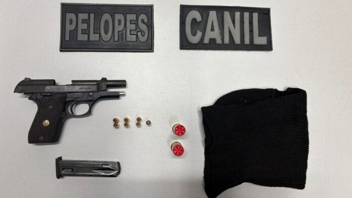 Durante as buscas, os policiais localizaram uma pistola com sete munições intactas, duas munições calibre 12 e uma balaclava e reconheceram a bicicleta, que coincide com a registrada em imagens de câmeras de segurança.