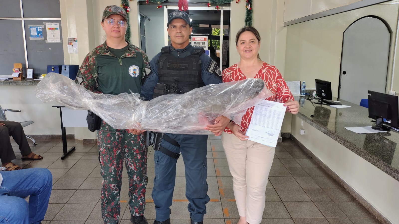 O 2º Batalhão de Polícia Militar Ambiental realizou nesta quarta-feira (10.12) a doação de um pintado de 1,40 metros e 21 quilos, apreendido na última sexta-feira (05.12) durante fiscalização no período de defeso (Piracema). O pescado, que fora capturado de forma ilegal no Rio Dourados e apreendido pela PMA quando o autor realizava o transporte do mesmo, foi destinado a uma instituição local, Hospital da Vida, garantindo aproveitamento social, conforme previsto na Legislação Ambiental.