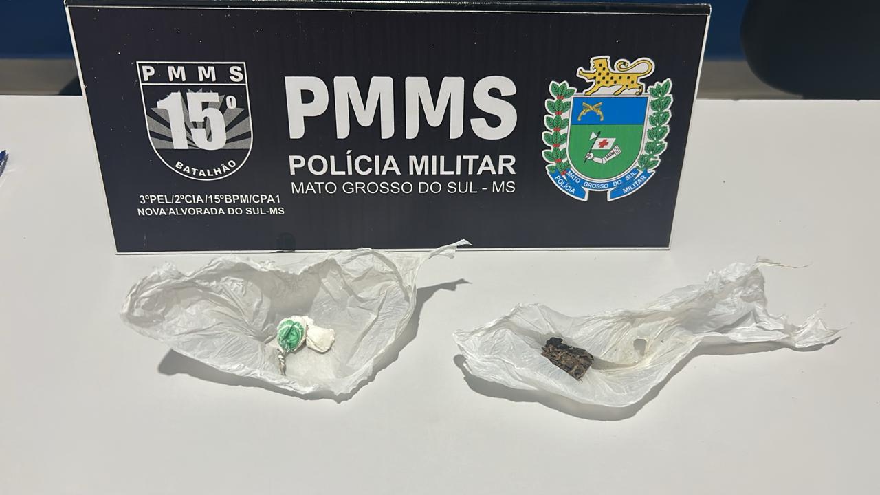 Na noite de ontem, sábado (7), por volta das 23h20, a Polícia Militar de Nova Alvorada do Sul flagrou um homem de 27 anos portando entorpecentes para consumo pessoal em um restaurante localizado na região central do município.