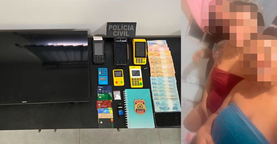 Durante as diligências, os policiais localizaram o imóvel utilizado pelo grupo criminoso e apreenderam diversos cartões bancários em nome de terceiros, um caderno com dados bancários de várias vítimas, substância análoga à cocaína, seis máquinas de cartão, uma grande quantia em dinheiro, um televisor sem comprovação de origem e comprimidos de clonazepam, medicamento com efeito sedativo.