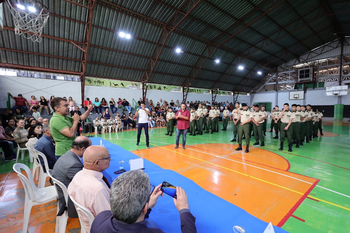 O prefeito ainda registrou a presença de vereadores e cumprimentou o presidente de honra da Guarda Mirim e vice-governador do Estado, José Carlos Barbosa, o Barbosinha, “essa pessoa que é entusiasta da Guarda Mirim há muito tempo. Graças a ele, hoje a sede da Guarda Mirim é uma realidade”.