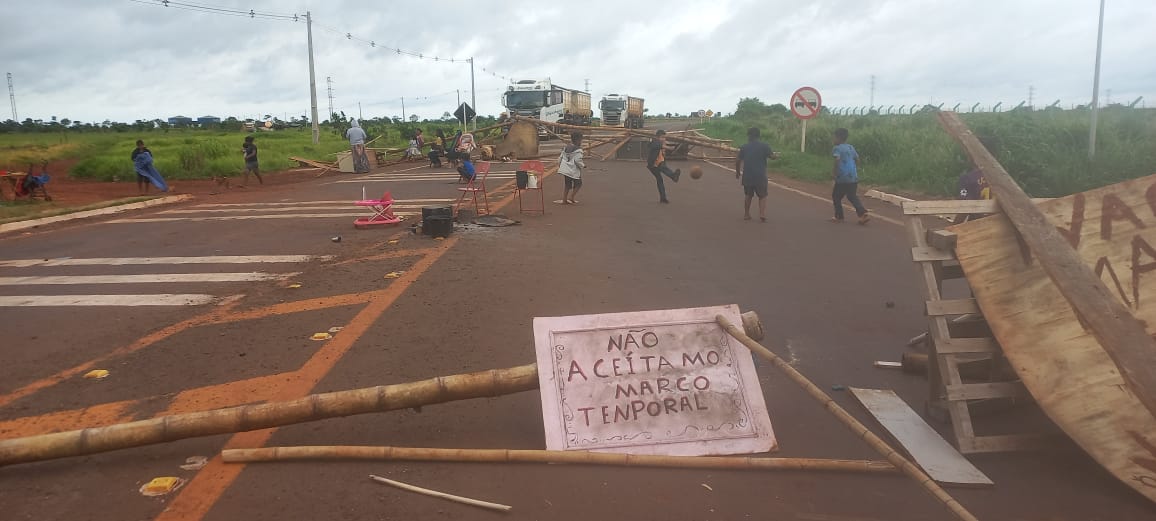 Uma live realizada na manhã desta sexta-feira pelo repórter Cido Costa, da Folha de Dourados, mostrou que permanece o bloqueio na entrada do Anel Viário, no trevo da Avenida Guaicurus, em Dourados. A interdição, que começou ainda na quinta-feira (11), é promovida por manifestantes contrários à aprovação do marco temporal para demarcação de terras indígenas.