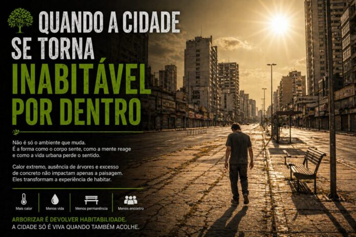 Há um ponto em que a transformação urbana deixa de ser percebida apenas no espaço físico e passa a se manifestar na experiência interna de quem vive nele. Não se trata mais de observar a ausência de árvores, a redução da sombra ou o aumento da temperatura. Trata-se de perceber que algo mudou na forma como o corpo reage ao ambiente, como se a cidade deixasse de acolher e passasse apenas a ser tolerada.