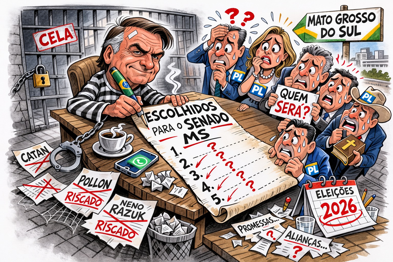 Mesmo preso, Jair Bolsonaro deve bater o martelo sobre os candidatos do PL ao Senado em Mato Grosso do Sul. A definição pode alterar o plano inicialmente desenhado pela direção nacional do partido. A palavra final do ex-presidente tende a influenciar diretamente a composição da chapa.