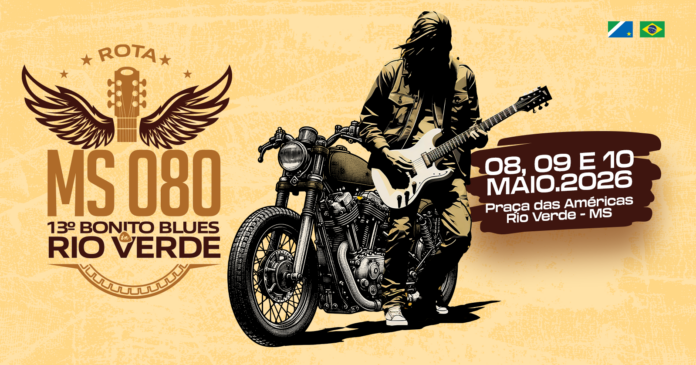 A cidade de Rio Verde de Mato Grosso (MS) se prepara para viver um dos maiores encontros de mototurismo e música do estado com a realização da Rota MS 080 & 13º Bonito Blues in Rio Verde 2026, entre os dias 8 e 10 de maio. A proposta integra mototurismo, cultura e desenvolvimento econômico em uma programação que deve atrair motociclistas, turistas e amantes do rock’n roll e do blues de diversas regiões do Brasil e até do exterior.