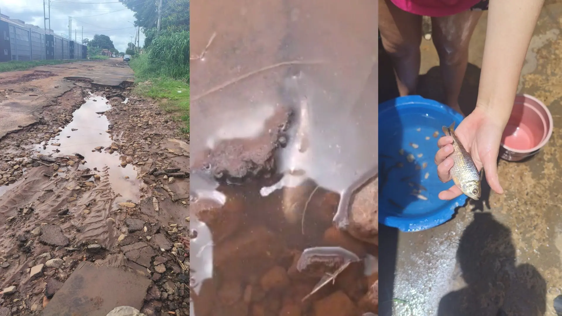 ‘Rua virou rio’. A frase usada por muitos campo-grandenses para se referir aos alagamentos causados pela chuva ganhou mais um embasamento que assemelha-se aos ‘rios verdadeiros’. Isso porque, nesta quinta-feira (5), uma moradora encontrou peixes em um buraco na Rua Augusta Rossini Guidi, no bairro Jardim Los Angeles.