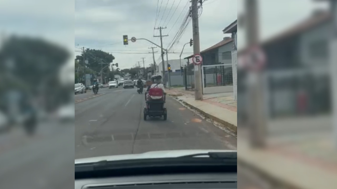 Na manhã desta quinta-feira (27), ocupantes de uma scooter autopropelida chamaram atenção e causaram polêmica entre motoristas que passavam pela Rua Joaquim Murtinho, em Campo Grande. O veículo circulava por volta das 8h em uma das faixas da via movimentada, provocando lentidão em pleno horário de pico.