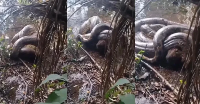 A capivara havia sido puxada do barranco para a margem de um rio segundos antes da chegada de Eduardo. Ao Conexão Planeta, o monitor relatou que a sucuri estava totalmente enrolada na presa e iniciava o processo de subjugação.