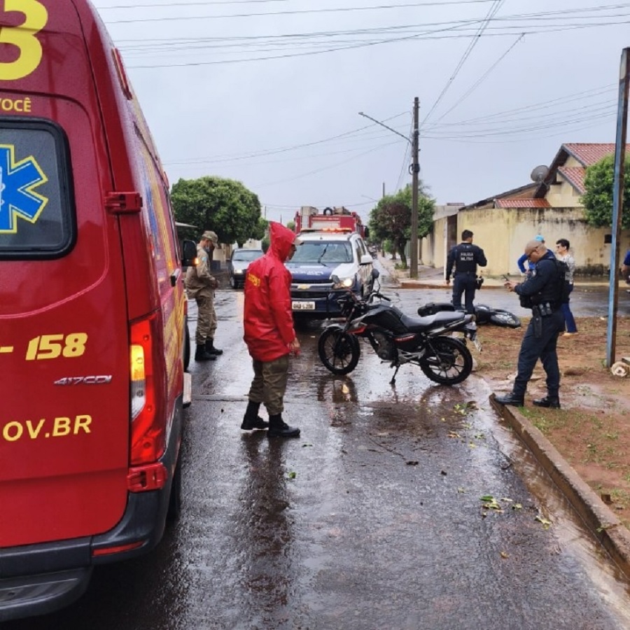 Na tarde desta sexta-feira (14), um acidente envolvendo duas motocicletas deixou uma pessoa gravemente ferida no cruzamento das ruas Elizabeth Robiano com Sete de Setembro, na região central de Nova Andradina. O acidente ocorreu durante o temporal que atingiu a cidade.