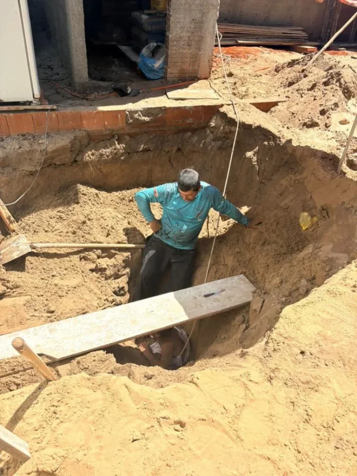 Por sorte, um amigo da vítima chegou no momento do acidente e começou a cavar com as próprias mãos, conseguindo liberar a cabeça do trabalhador. A ação permitiu que ele respirasse até a chegada da equipe de resgate.
