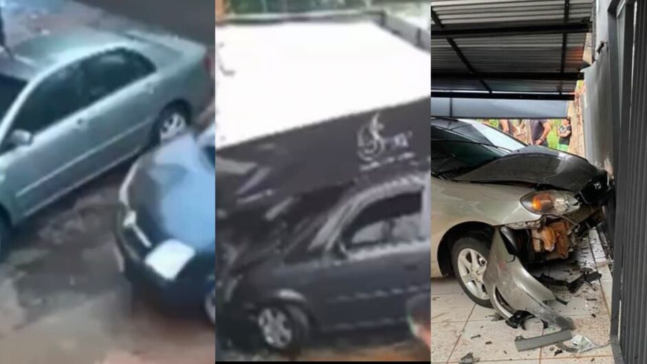 Imagens de câmeras de segurança mostram o momento em que o Meriva chega em alta velocidade e atinge o carro parado. O motorista, vestindo bermuda vermelha e camiseta preta, fugiu descalço, levando os chinelos nas mãos. O impacto chamou a atenção de moradores e da proprietária do veículo atingido, que se desesperou ao ver os danos.