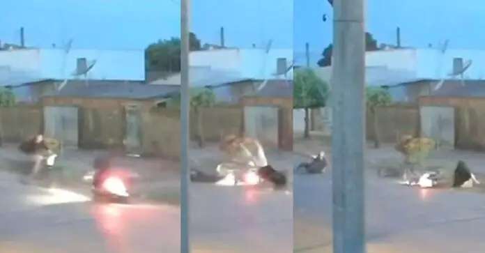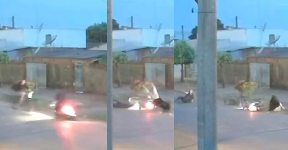 Um acidente que poderia ter terminado em tragédia foi registrado por câmeras de segurança na tarde desta quarta-feira (12), no bairro Jardim Rodrigues, em Três Lagoas, a 326 quilômetros de Campo Grande.