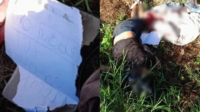 Ao lado do corpo, foi encontrado um bilhete com a mensagem em espanhol: “No robar JDF vamos por más” (“Não roubar. JDF vamos por mais”, em tradução livre).
