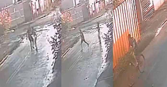 Diante da resistência, o suspeito desiste da ação e foge. O vídeo mostra o momento em que ele corre até o local onde havia deixado a bicicleta e deixa a região rapidamente.
