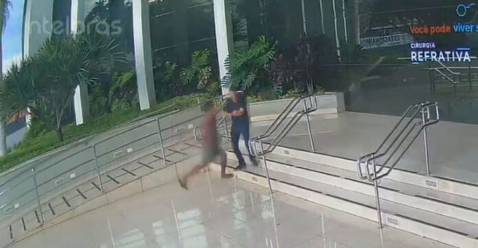 As imagens de segurança mostram o agressor deitado próximo à porta de entrada da clínica. Em seguida, o paciente chega ao local e permanece aguardando o horário de funcionamento. Em determinado momento, o suspeito se levanta, aproxima-se da vítima e desfere um soco no rosto, derrubando o paciente no chão. Mesmo após a vítima conseguir se levantar, o agressor continua com as agressões. O paciente então corre em direção à rua, momento em que as imagens deixam de registrar o ocorrido.