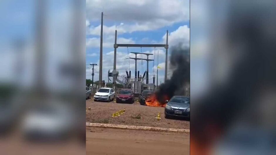 Dois veículos pegaram fogo na manhã desta sexta-feira (7) no estacionamento da unidade da JBS, em Sidrolândia.
