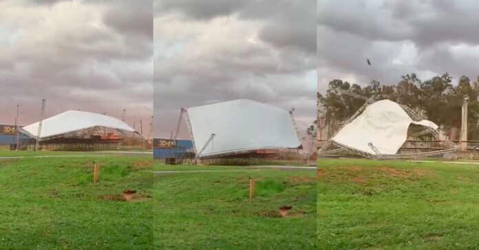 (Vídeo) Vendaval causa estragos em estrutura de evento de aniversário em MS