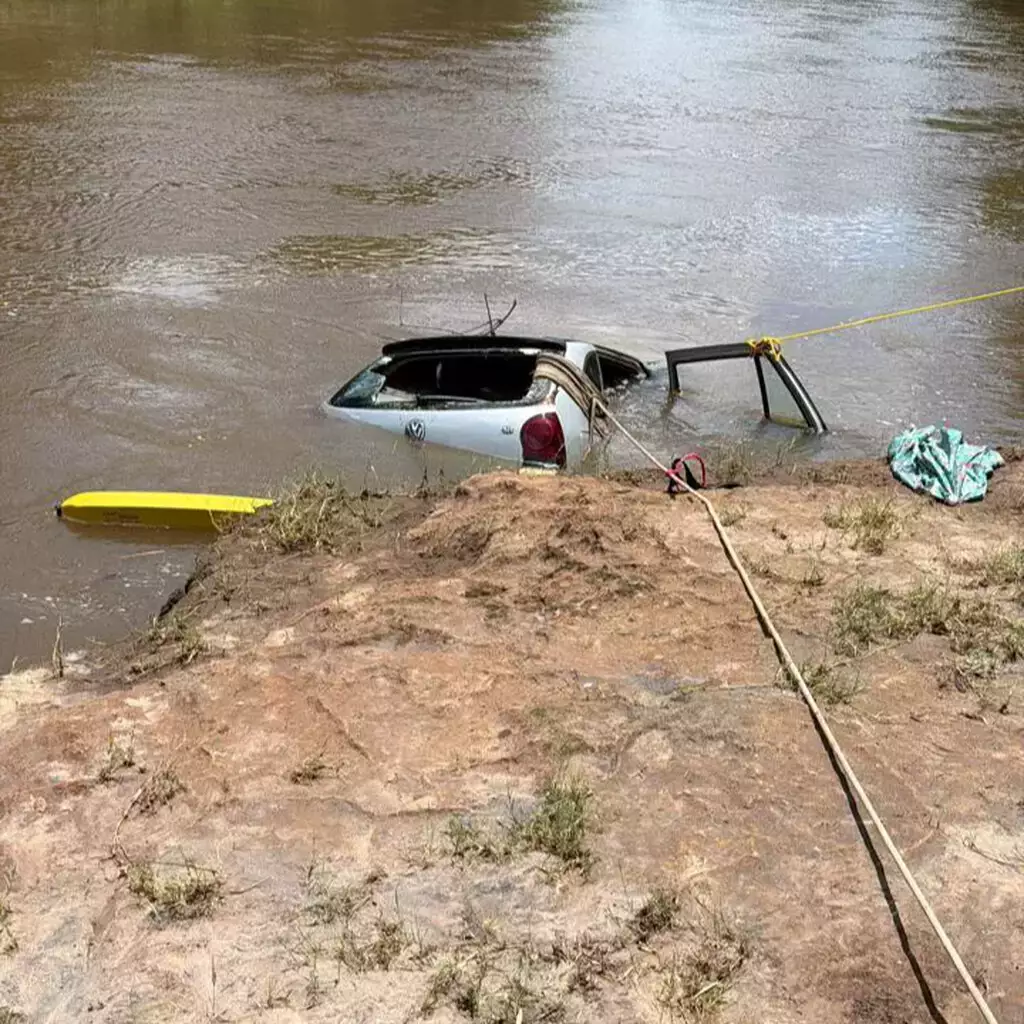 O acidente teria ocorrido durante a madrugada, e a Polícia Militar foi acionada pela manhã por uma pessoa que passou pelo local e percebeu que o carro já estava dentro do rio.